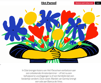 Deze week werd die stem verleden tijd. Ons icoon van VrijdagZaterdag is niet meer. Bianca de Vries was een rasbestuurder en wilde, zoals altijd, ook de regie over het einde van haar eigen leven. Al als kind wilde ze onafhankelijk zijn. Dertig jaar geleden was ze een van de eersten die een euthanasieverklaring tekende. Een jaar geleden besloot zij dat dat moment dit jaar zou komen. Moe, leeg, met een achteruithollend gezichtsvermogen, wilde ze niet wachten tot fatale aftakeling. Vanaf de zomer deelde ze haar besluit. Ze gaf de mensen om haar heen ruim de tijd om het te begrijpen. Dat is van zeldzame klasse. Ze hoopte, en sprak dat ook uit, dat geënsceneerd sterven niet nodig zou zijn. Dat ze eerder vanzelf zou vertrekken. Euthanasie was gepland op 3 november. Maar juist op die dag kwam haar diepste wens uit. Op deze dag won de natuurlijke dood een paar uur voor de kunstmatige. Het klinkt als een ongelooflijk wonder, en dat was het ook. Bianca bleef onafhankelijk. En bestuurder tot op het laatst. Een van haar laatste woorden als emeritus-voorzitter was een oproep op de vraag of zij nog een wens of een boodschap aan ons had. Zij zei: “Koester en onderhoud wat Pakhuis VrijdagZaterdag zo bijzonder maakt: Saamhorigheid."
